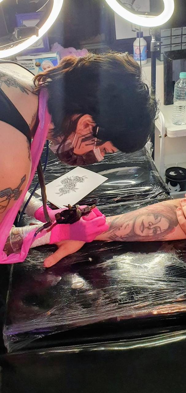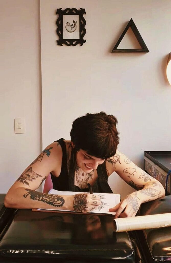 “Eu faço blackwork e fineline”, ela diz com simplicidade. Mas quem conhece seu trabalho sabe: ela faz muito mais. Ela descongela memórias.